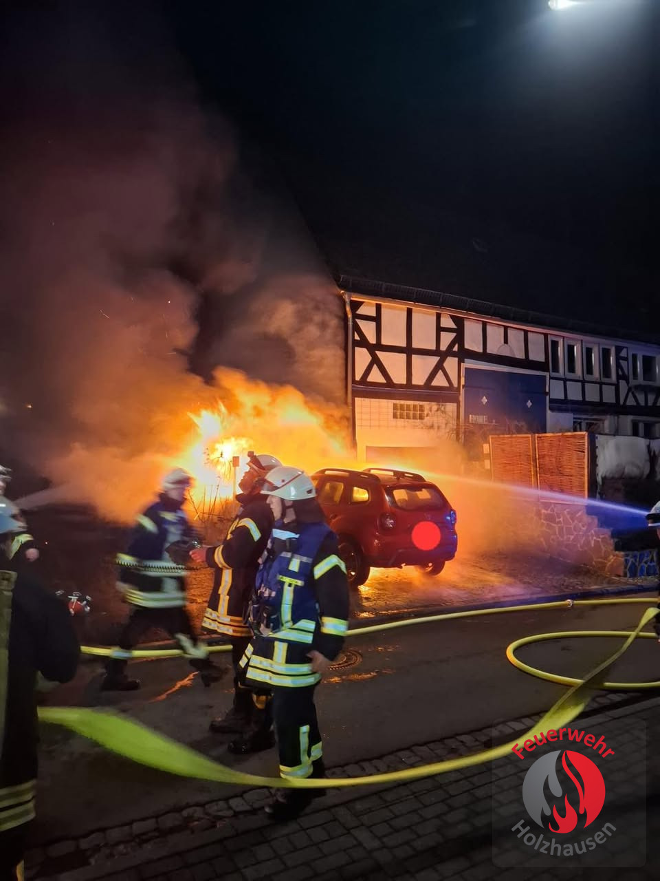 PKW Brand mit Ausdehnung auf Gebäude