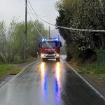 Heute Morgen wurden wir von der Leitstelle zu einem Strommast, der auf der Straße liegt, alarmiert. Dieser ist in Zusammenhang mit einem Wildunfall derart beschädigt worden, dass dieser umfiel.