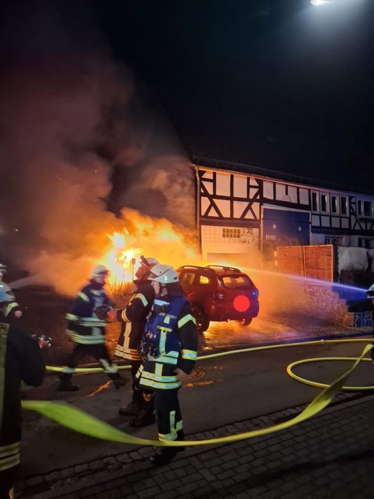 Gestern Abend, kurz vor Mitternacht, wurden wir zusammen mit den Einheiten Feuerwehr Niederdresselndorf und Freiwillige Feuerwehr Burbach – Siegerland zu einem Feuer 4 Garagenbrand mit Auswirkung auf Gebäude ins Dorf alarmiert.