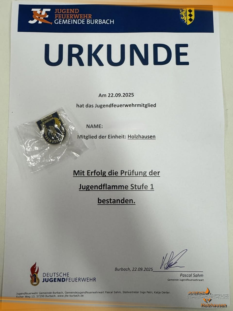Nachdem dieses Jahr die Abnahme der Jugendflamme Stufe 1 Gemeindeweit nicht stattfand, sind wir umso erfreuter, dass wir gestern gemeinsam mit der Einheit Feuerwehr Niederdresselndorf