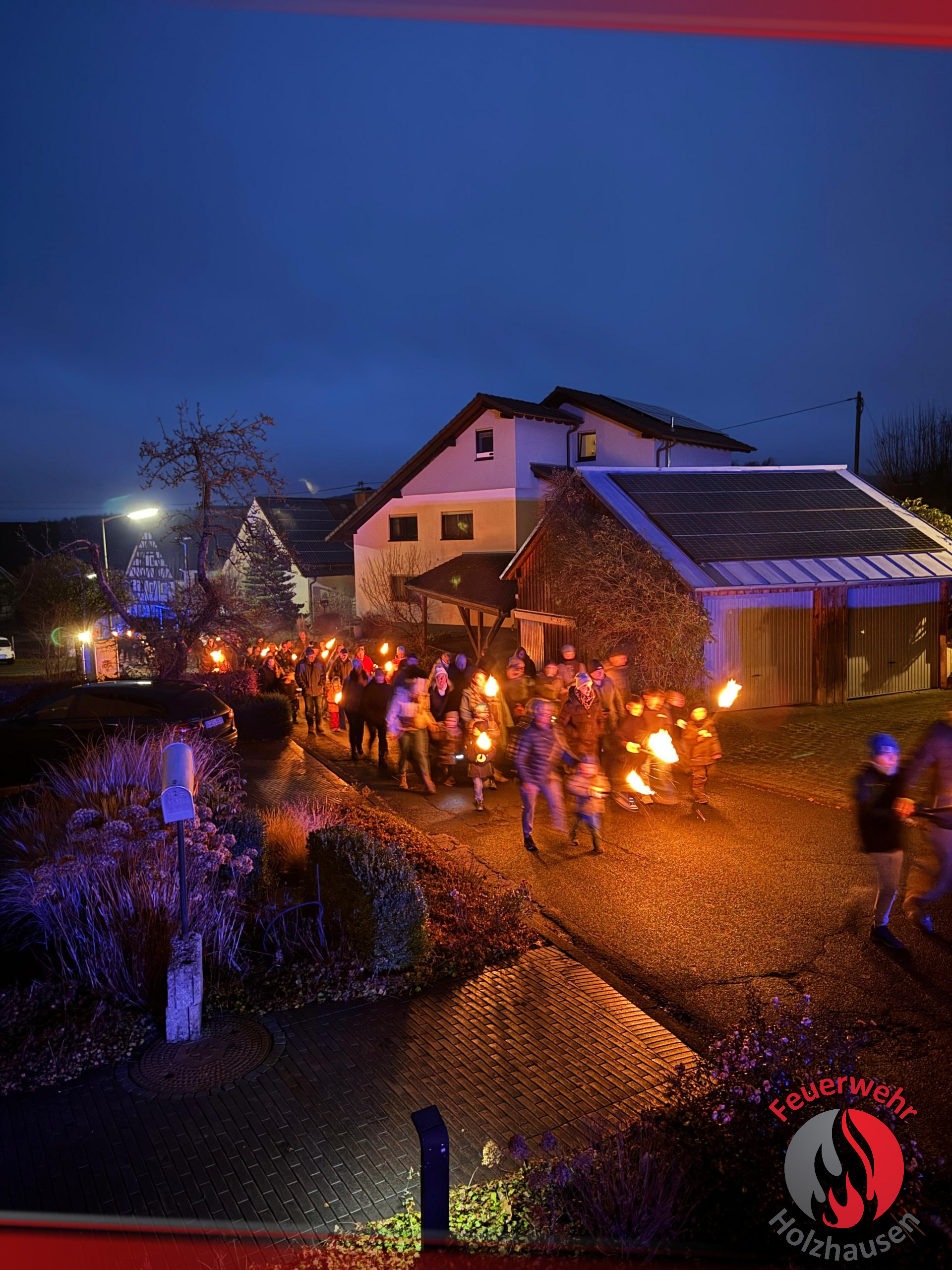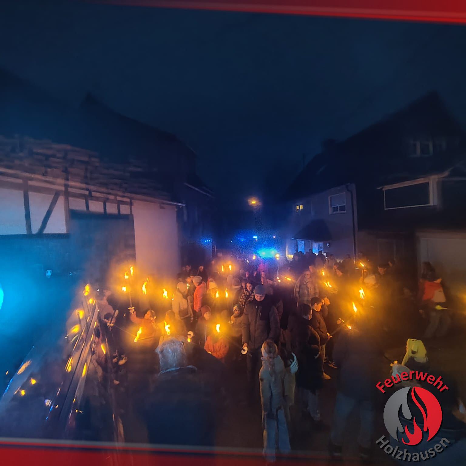 Der Abend beginnt am Dorfbrunnen in Holzhausen, von wo aus wir gemeinsam bei einem stimmungsvollen Fackelzug zum Gerätehaus der Einheit Holzhausen ziehen.